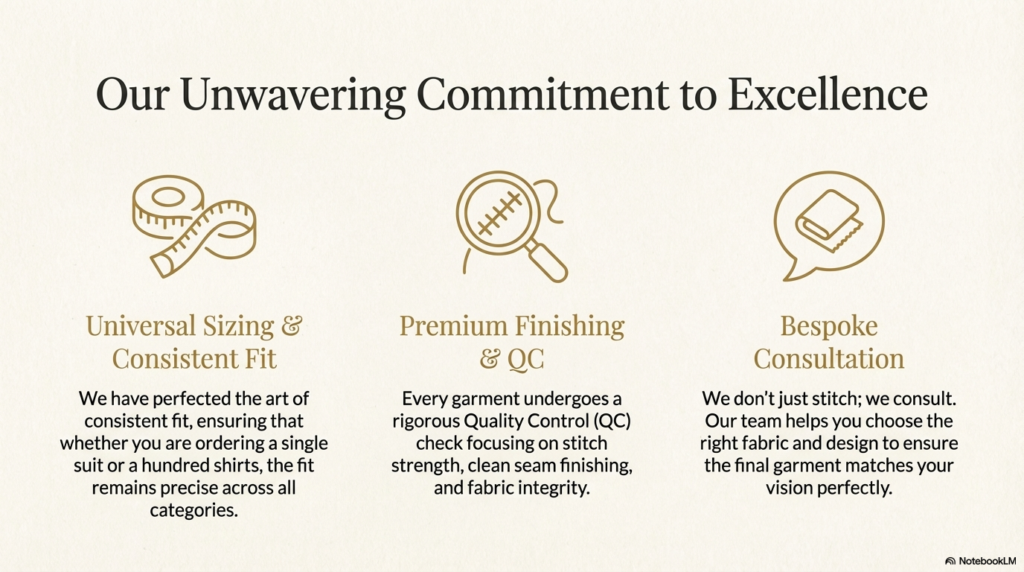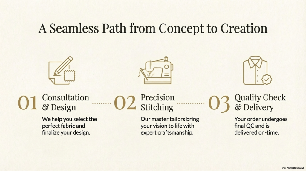 From sharply tailored formal wear—custom-fit shirts, blazers, and suits built for authority and precision—to elegantly handcrafted ethnic ensembles like kurtas and sherwanis that honor tradition with contemporary refinement, our garments are made for men who move with purpose. Every stitch reflects old-school craftsmanship blended with modern tailoring standards, creating clothing not for passing trends but for defining moments, milestones, and lasting impressions.